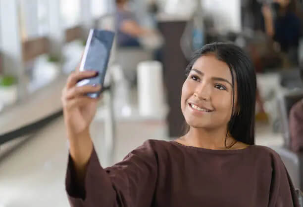 Quando você chega no salão com uma foto do corte que testou no próprio rosto, a conversa muda completamente. O profissional consegue ver exatamente o que você deseja e pode avaliar se é viável para sua textura real. Ele também pode sugerir adaptações baseadas na simulação.